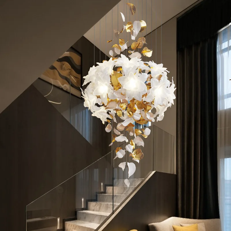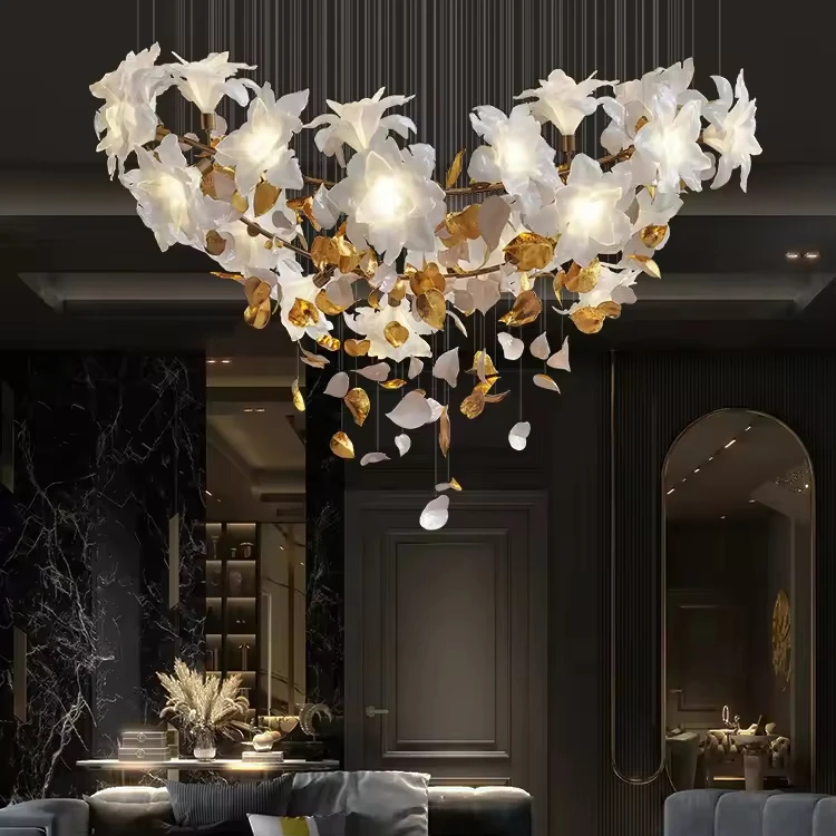 Flowers Design Villa bar Hotel High Ceiling Customized Pendant Lamp Hotel Ceramic Glass Flower Chandelier