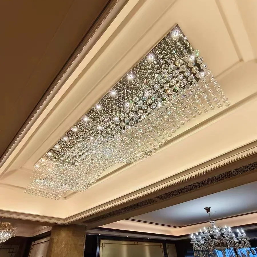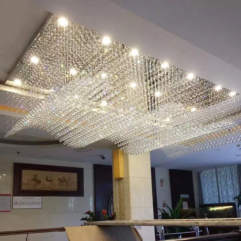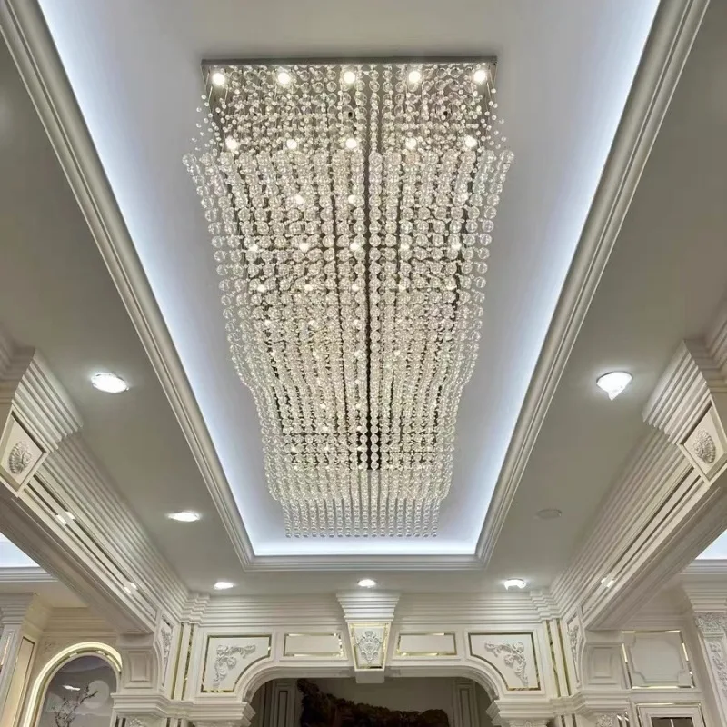 Zeal Lighting Hotel Lobby Hall Decorative Large Hanging Light Customized Long Gold Crystal Elegant Chandelier