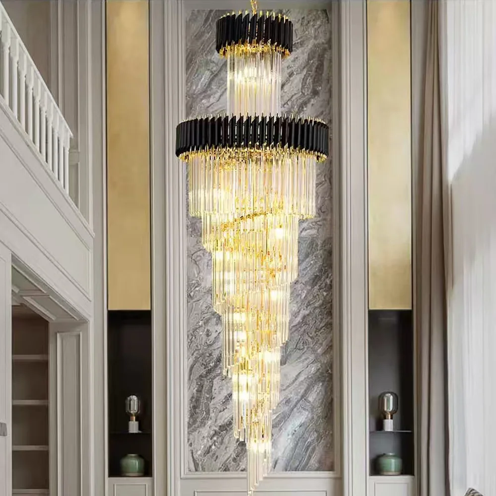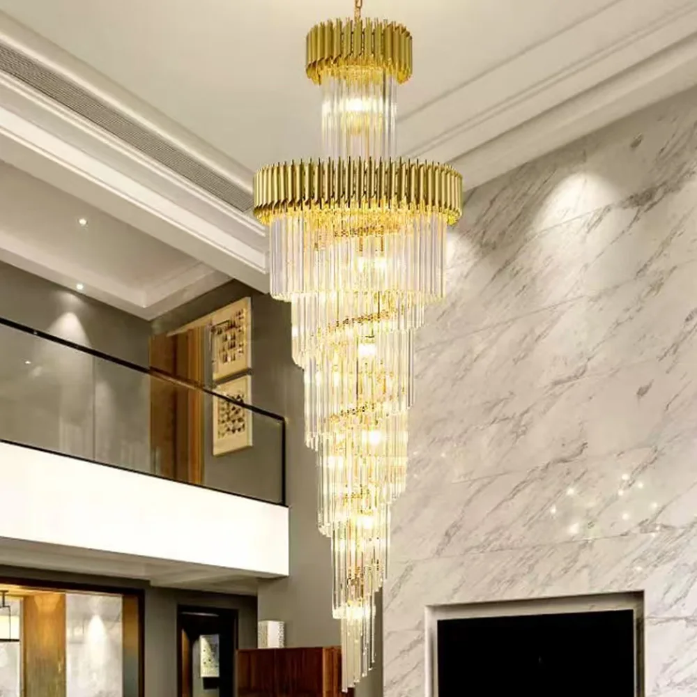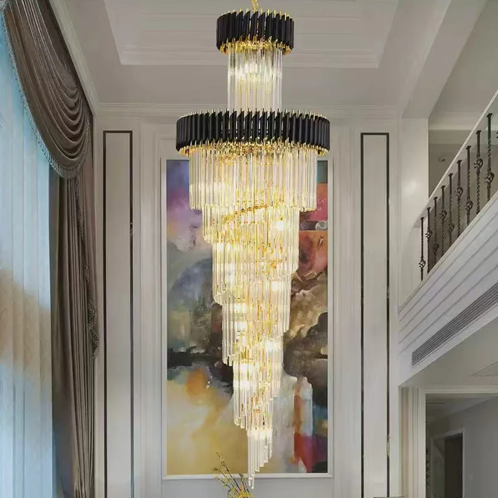 Zeal Lighting Long Stairwell Hanging Pendant Light Staircase Villa Duplex Stair High Ceiling Crystal Chandelier
