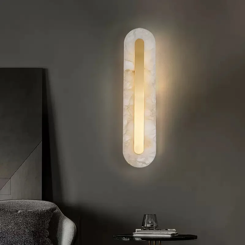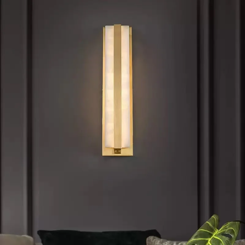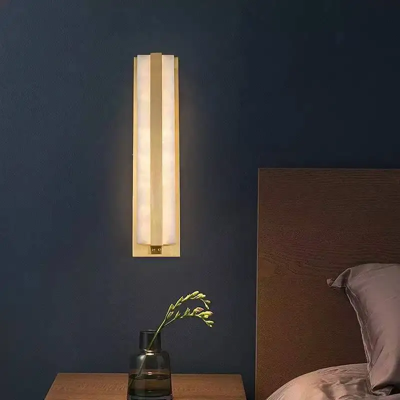 Copper Wall Sconce Lamp Background Natural Marble Indoor Wall Lamps for Home Hotel Bedroom