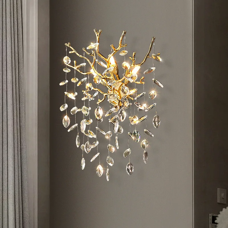 Modern Luxury Creative Wall Sconce Bedroom Living Room Led Tree Branch Crystal Wall Lamp