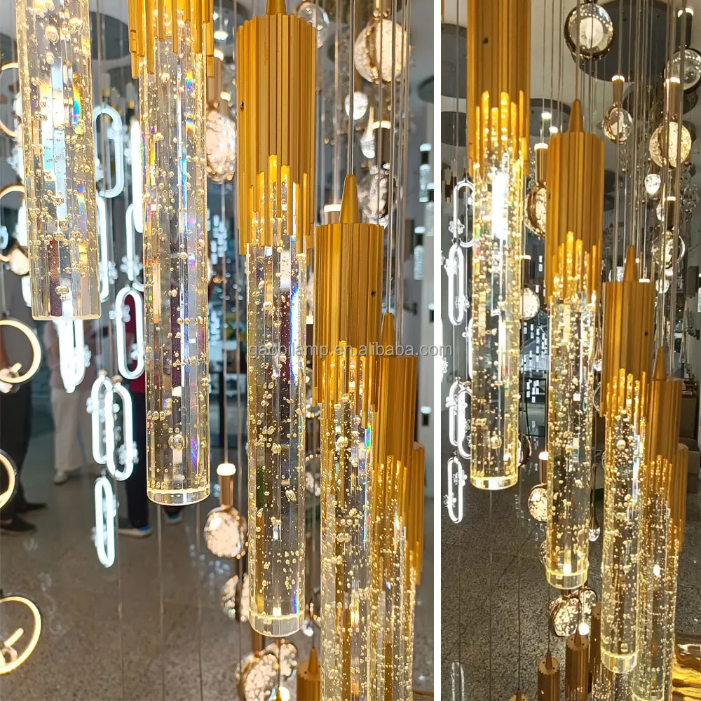 Zeal Lighting Hotel Lobby Hall Decorative Large Hanging Light Customized Long Gold Crystal Elegant Chandelier
