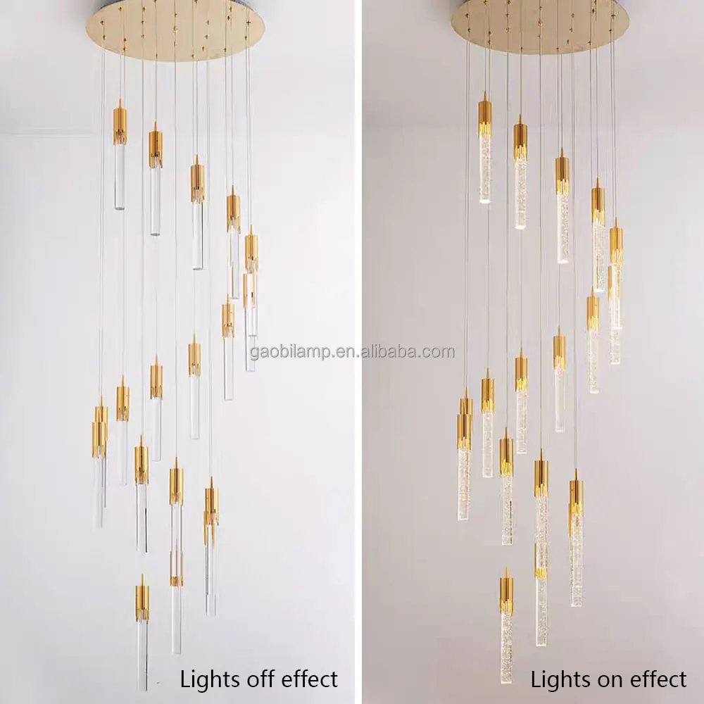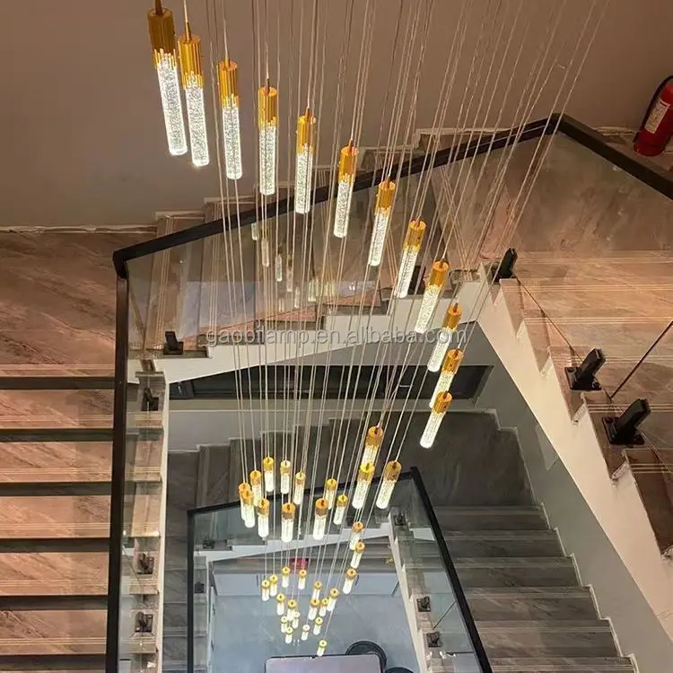 Zeal Lighting Long Stairwell Hanging Pendant Light Staircase Villa Duplex Stair High Ceiling Crystal Chandelier