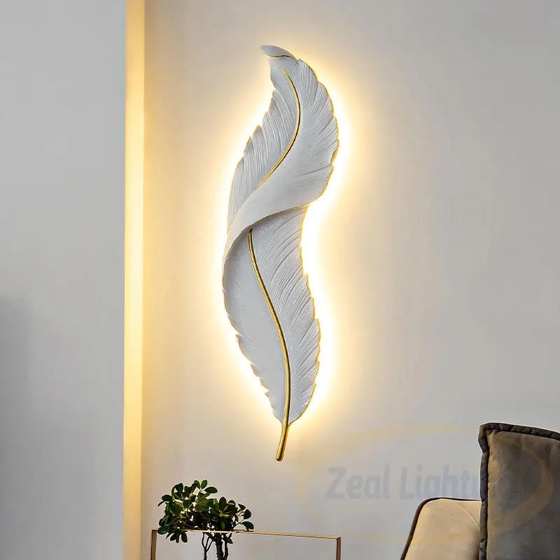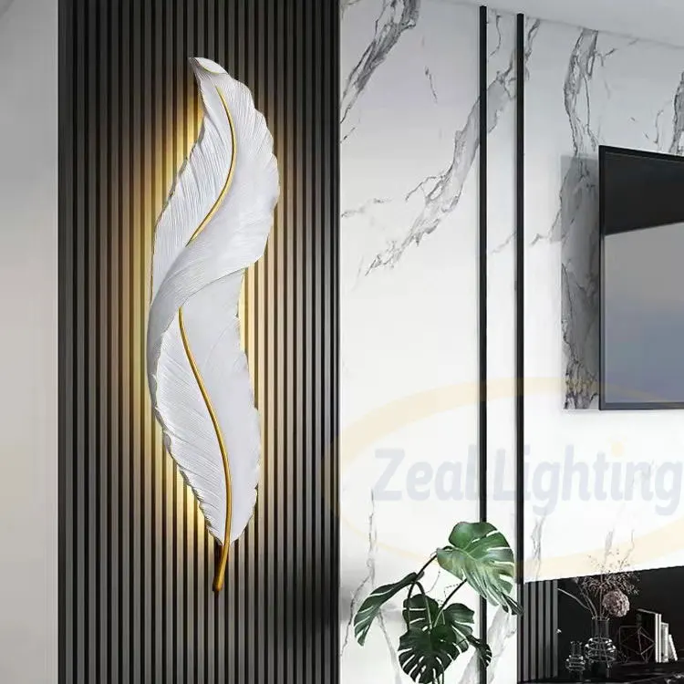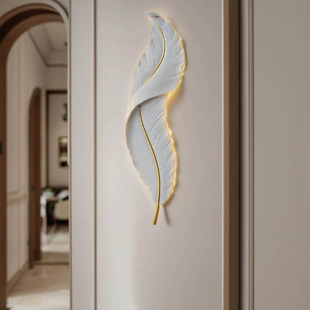 Creative Feather Shape Sconce Light Modern Design Indoor Porch Corridor Hotel 220v Resin Wall Lamp