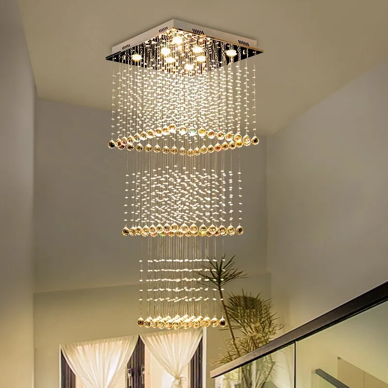 Modern Simple Nordic Living Room Crystal Chandelier Large Ceiling Lamp Pendant for Villa Square Duplex Staircase