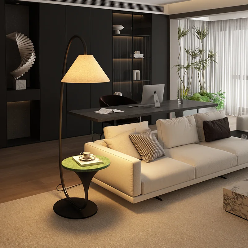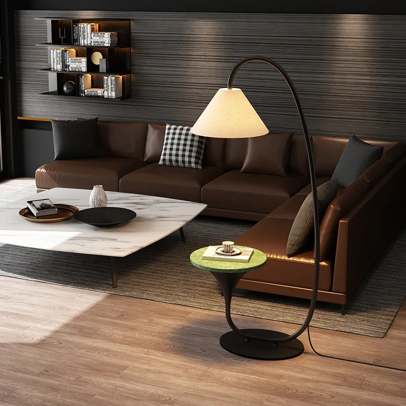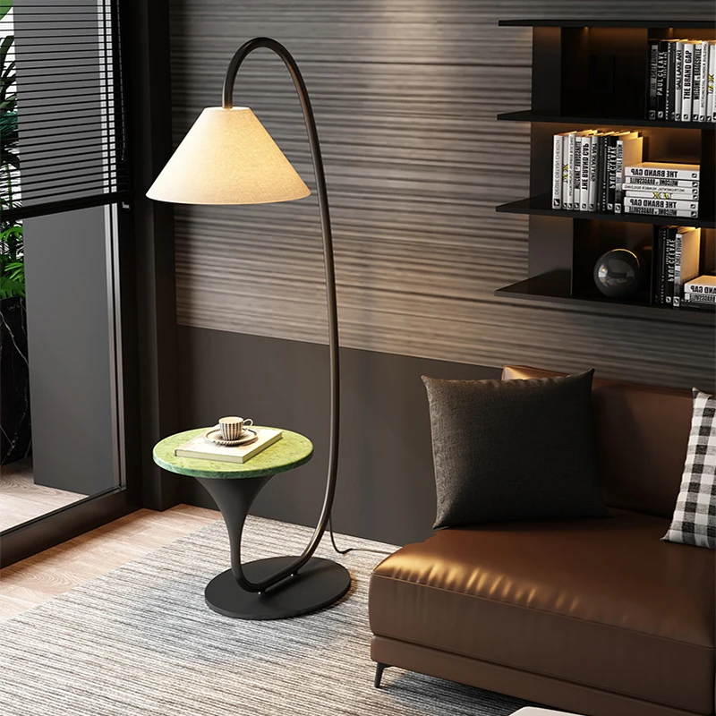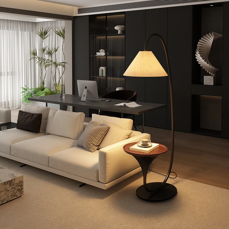 Modern Smart Wood Metal Standing Floor Lamp Bedroom Bedside Floor Lamp with Table