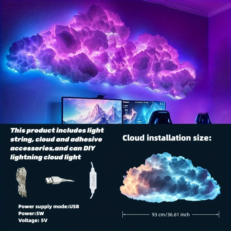 APP Control DIY Handmade 3D Atmosphere Lamp Thunder Cloud Rgb Lights for Room E-sports Room