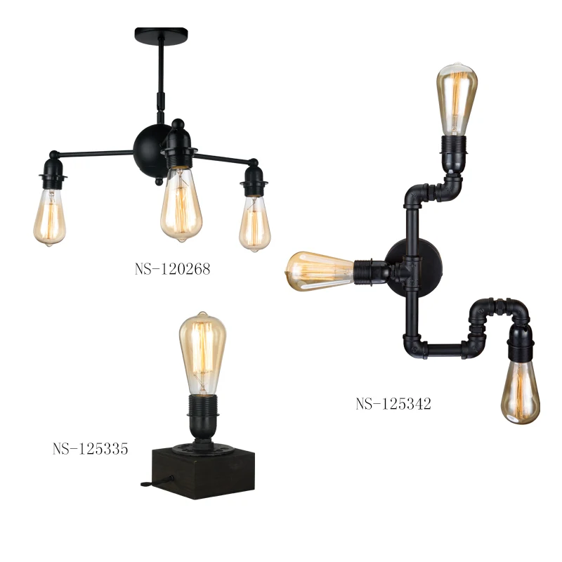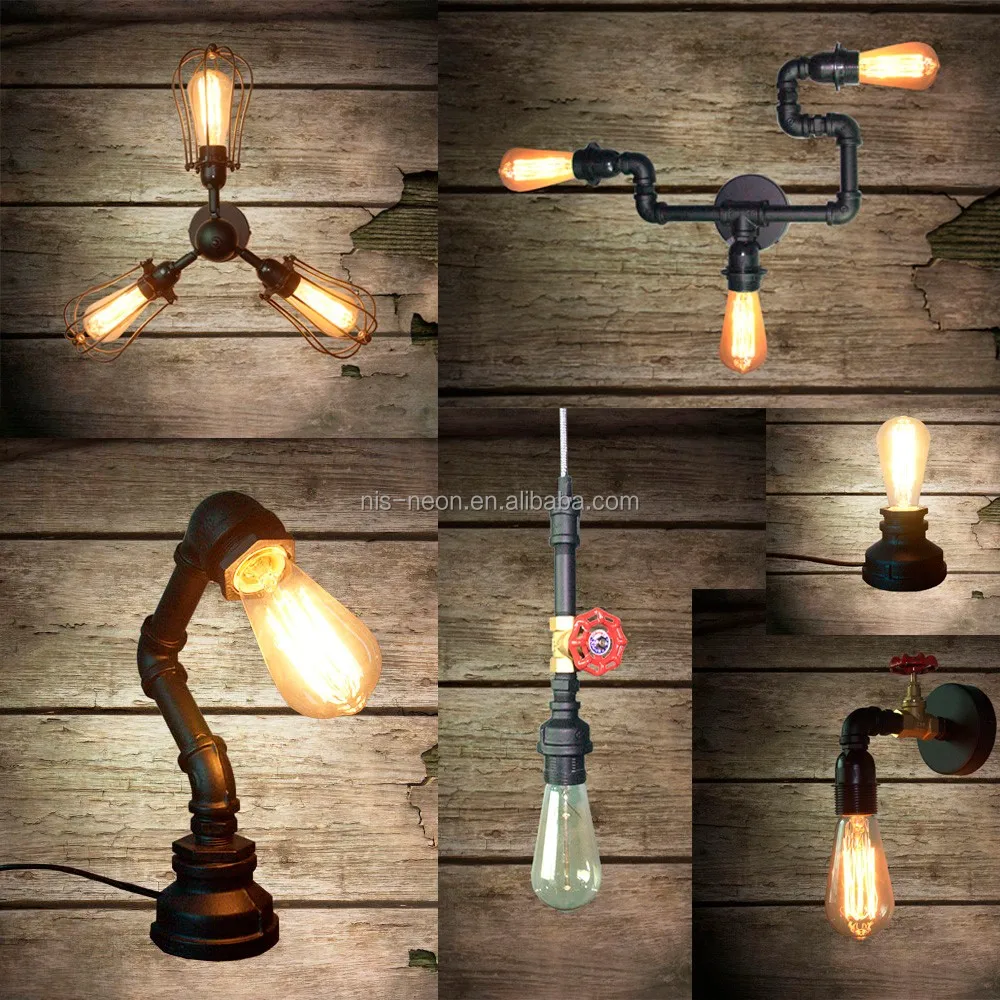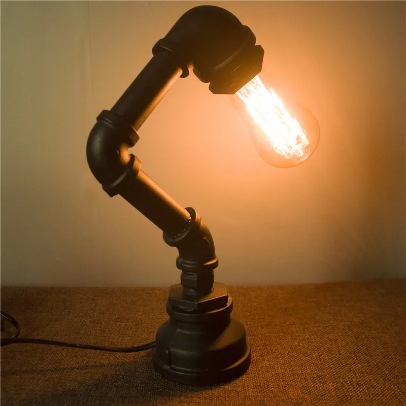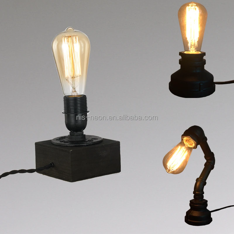 Industrial Lighting Vintage Antique Iron 1 Edison Table Light Wood Pipe Desk Lamp