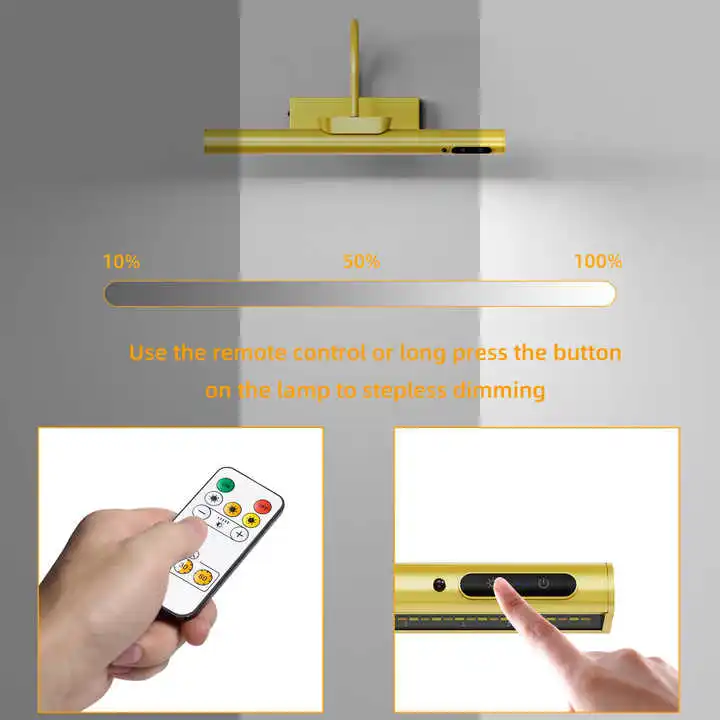 LED Battery Operated Picture Lighting Dimmable Three Mode Wall Lights Rotatable Head Wall Lamp Typc-c