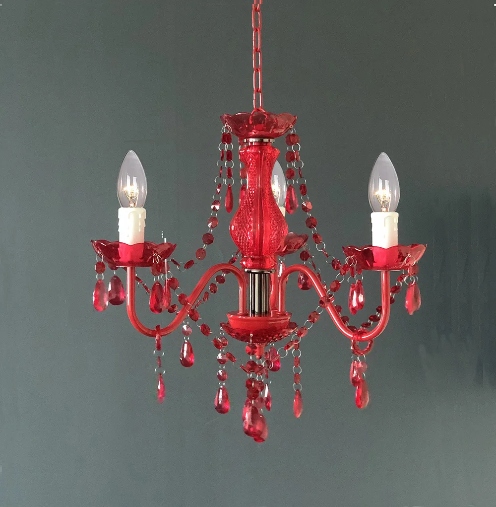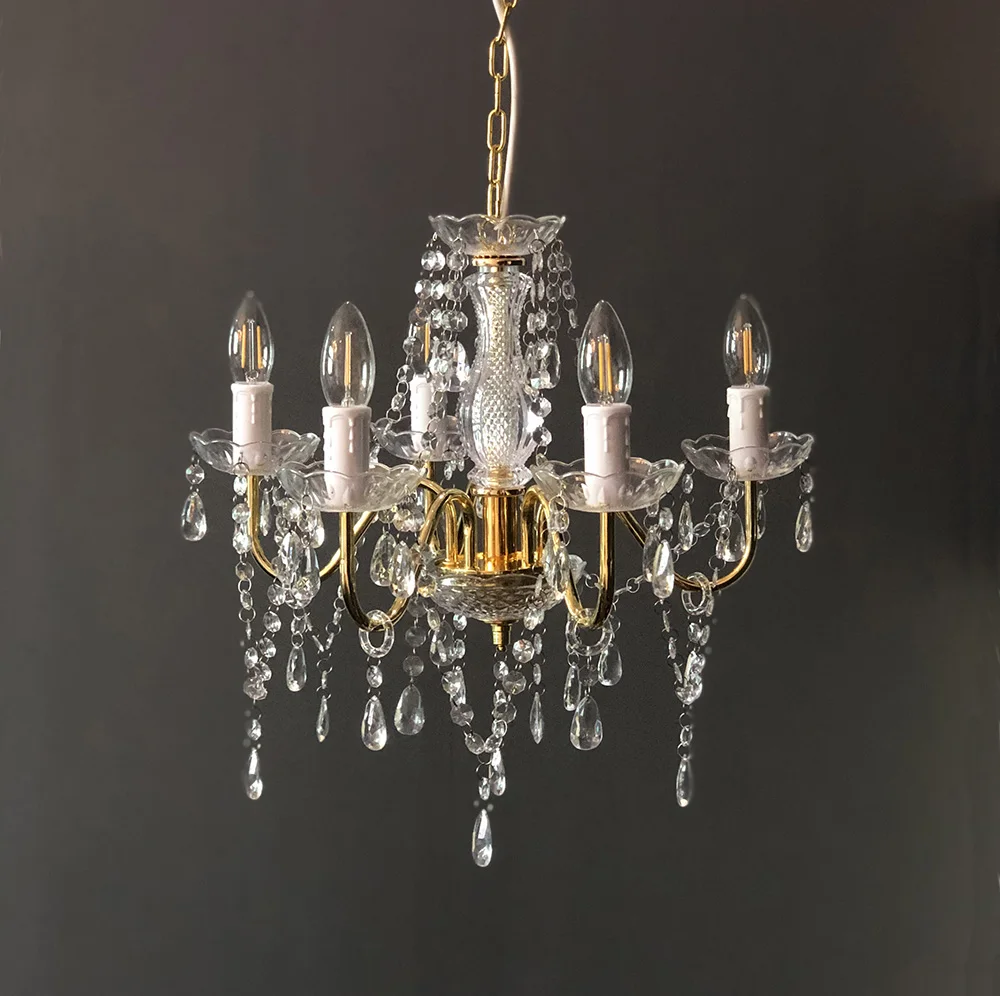 3 Light Gold Coloured Gypsy Plastic Acrylic Mini Chandelier Ceiling Lights for Home
