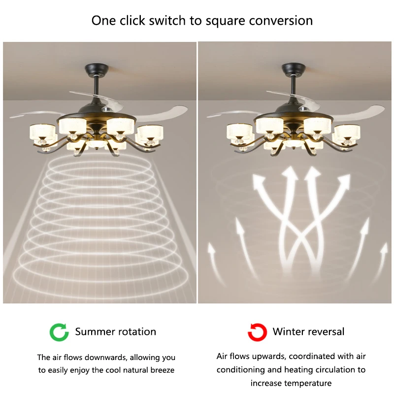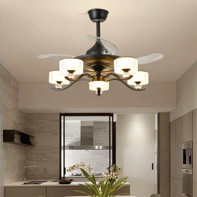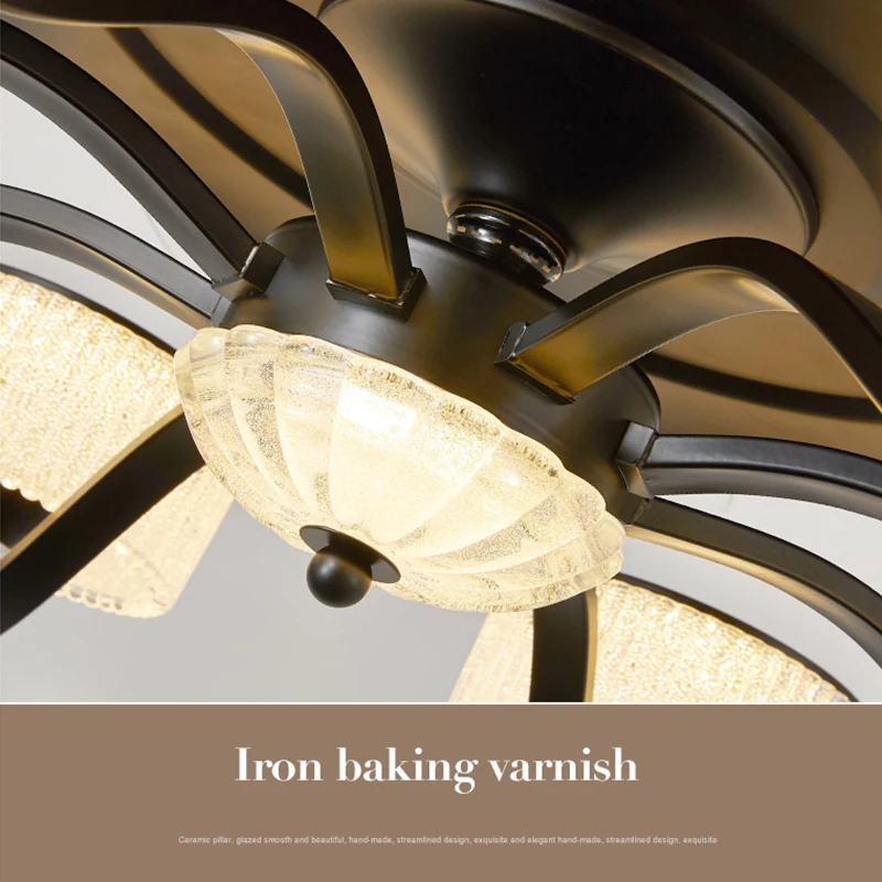 Large Modern Luxury LED Ceiling Fan Light for Living Room Black Iron Body with Hidden Blades and Remote Control