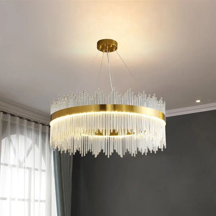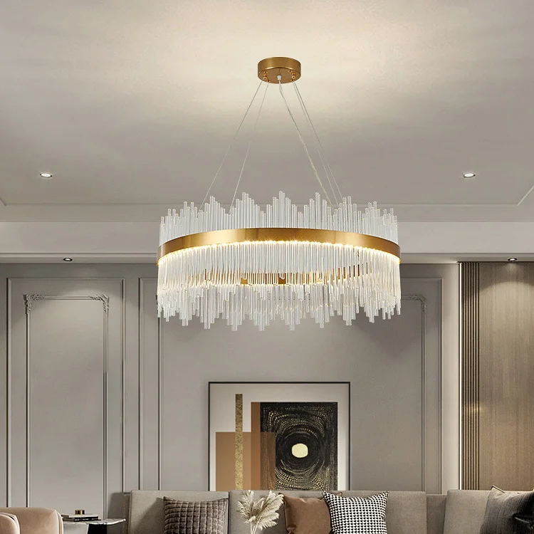 Round Modern Nordic Breakfast Counter Ceiling LED Pendant Lamp for Home Decor Ring Circle Luxury Crystal Chandelier Lighting