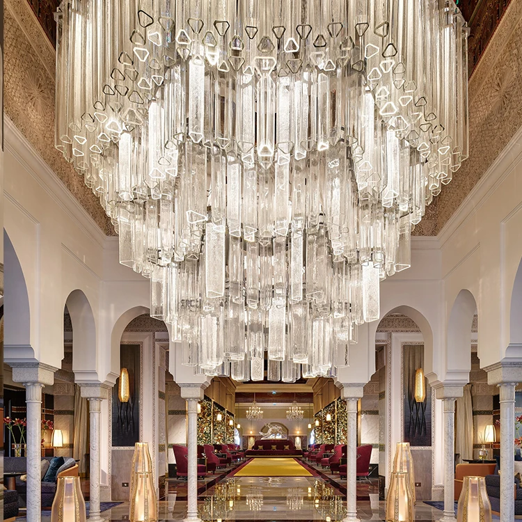 ECOJAS Nordic Postmodern Gold Simple Villa Large Crystal Chandelier Hotel Lighting Banquet Lighting Luxury Hotel Chandelier