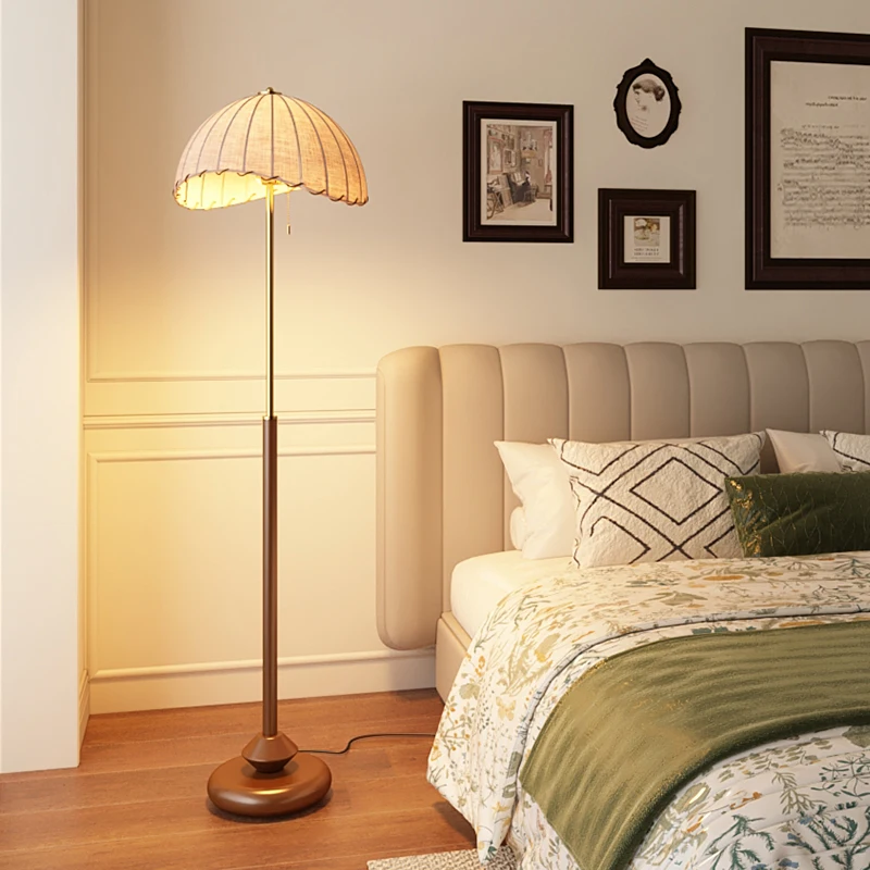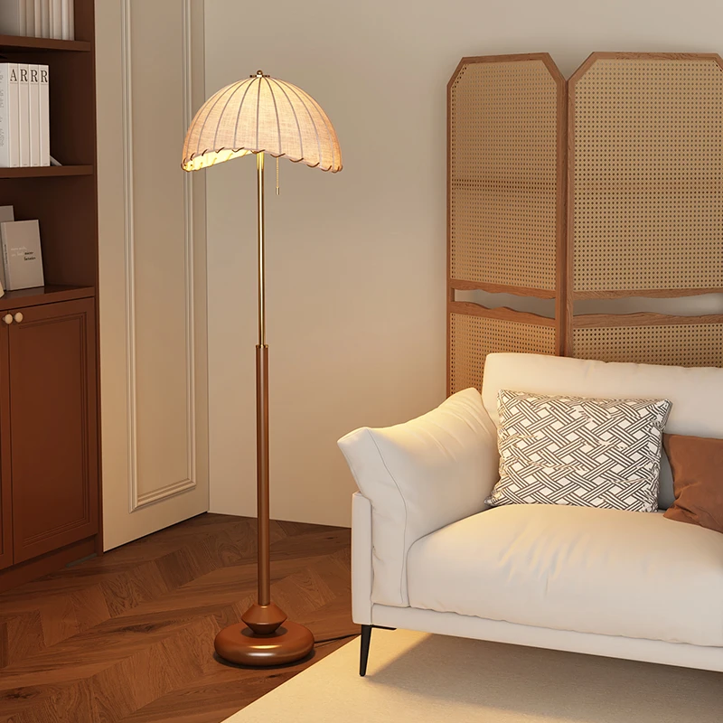 Chinese Style Luxury Home Decoration Lamp Living Room Sofa Corner Solid Wood Base Floor Lamp Cloth Lampshade Hotel Floor Lamp