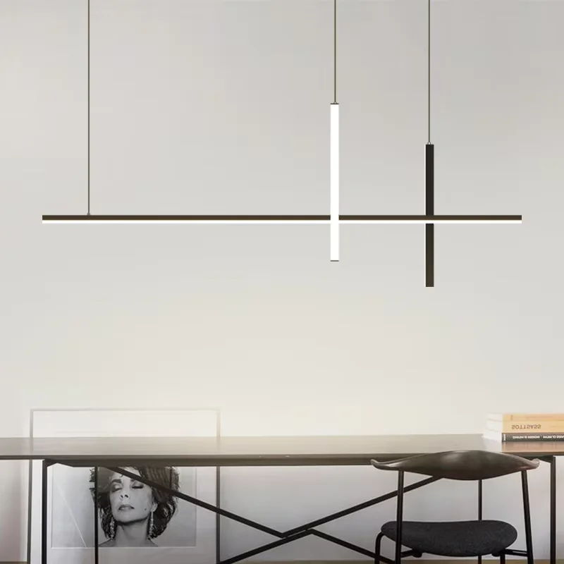 Modern Simple Hanging Lamps Black White Luxury Restaurant LED Chandelier