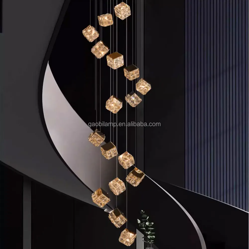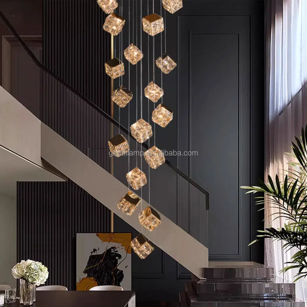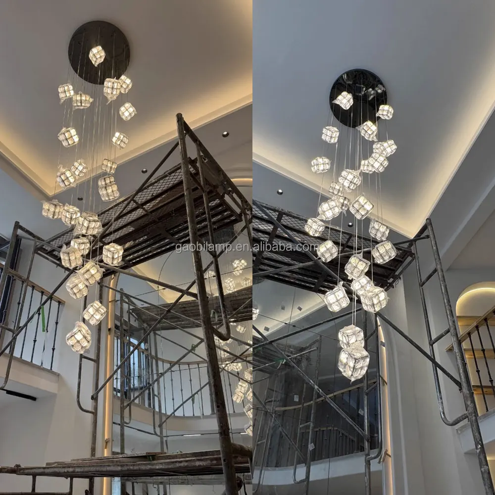 Zeal Lighting Long Stairwell Hanging Pendant Light Staircase Villa Duplex Stair High Ceiling Crystal Chandelier