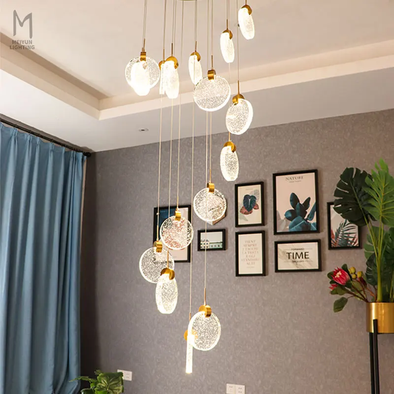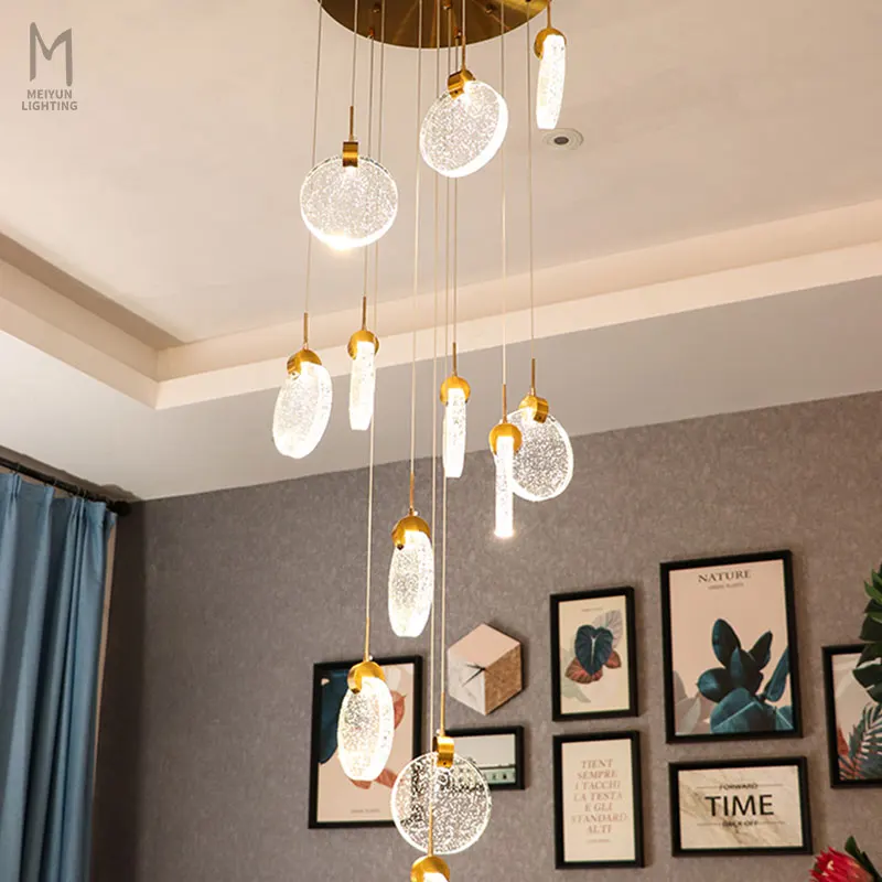 Zeal Lighting Long Stairwell Hanging Pendant Light Staircase Villa Duplex Stair High Ceiling Crystal Chandelier