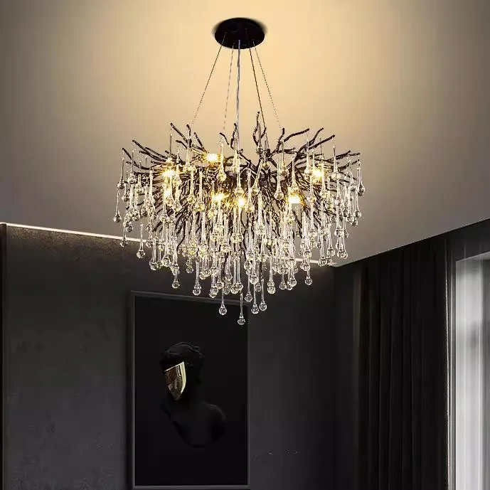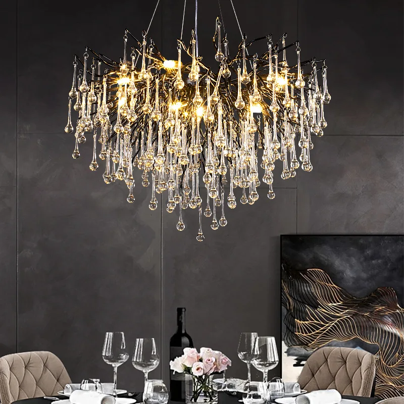 Luxury Home Commercial Hanging Crystal Chandelier Creative Tree Branch Water Drop Glass Art Warm White Aluminum AC Power Middle