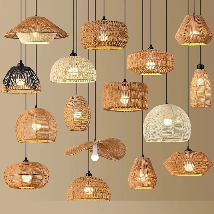 Wabi-Sabi Handcrafted Tassel Macrame Woven Pendant Light Twine Braid Rattan Led Rattan Chandelier