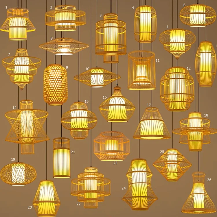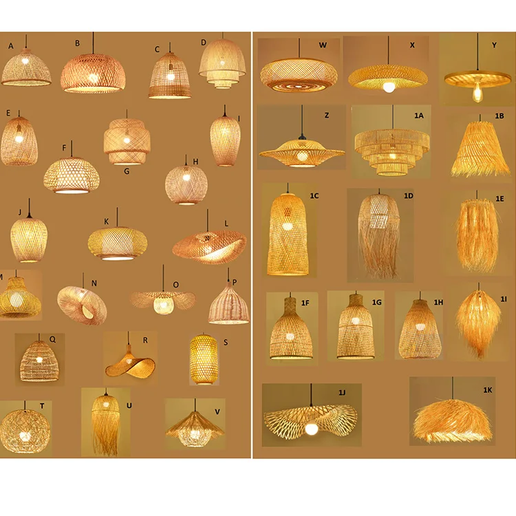 Handmade Rattan Pendant Light with Bamboo Lamp Shade Hanging Ratan Lighting for Home Wicker Chandeliers Rattan Lighting Fixture