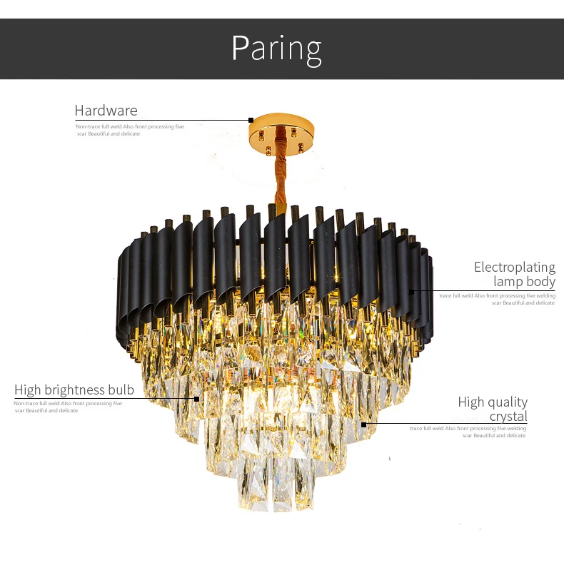Ceiling Luxury Chandelier Crystal Pendant Lights Modern Style Living Room Large Black Gold Led Wedding Lamp