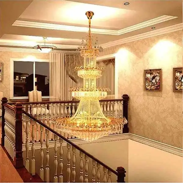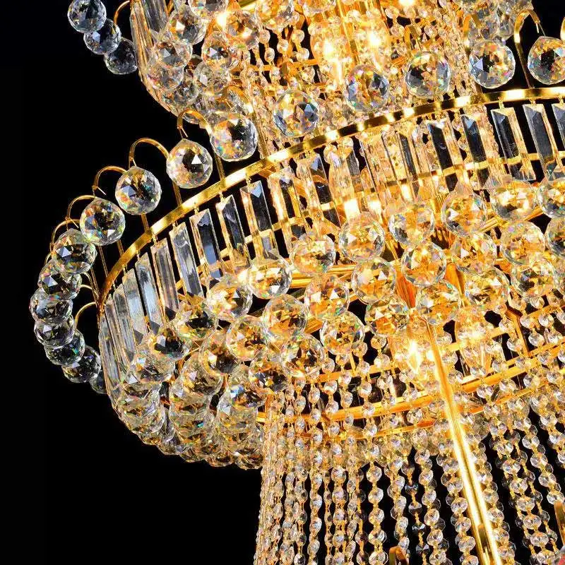 Zeal Lighting Hotel Lobby Hall Decorative Large Hanging Light Customized Long Gold Crystal Elegant Chandelier