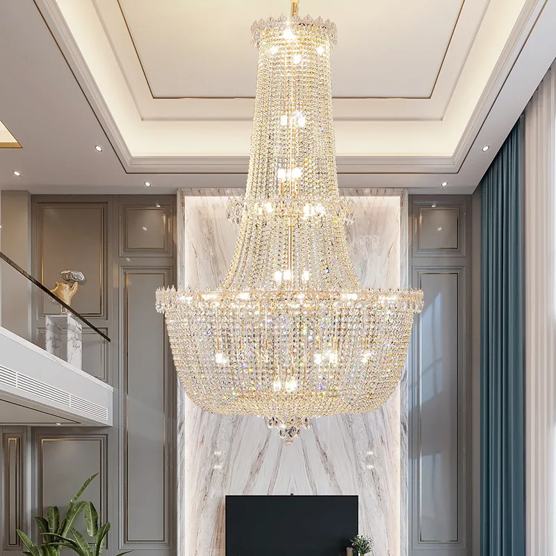 Zeal Lighting Hotel Lobby Hall Decorative Large Hanging Light Customized Long Gold Crystal Elegant Chandelier