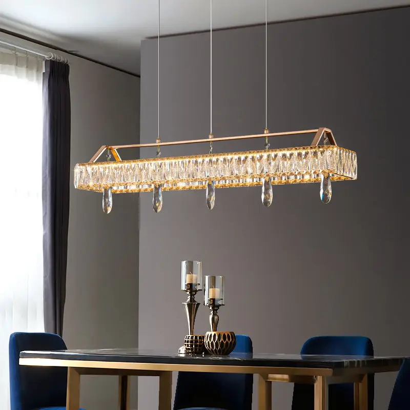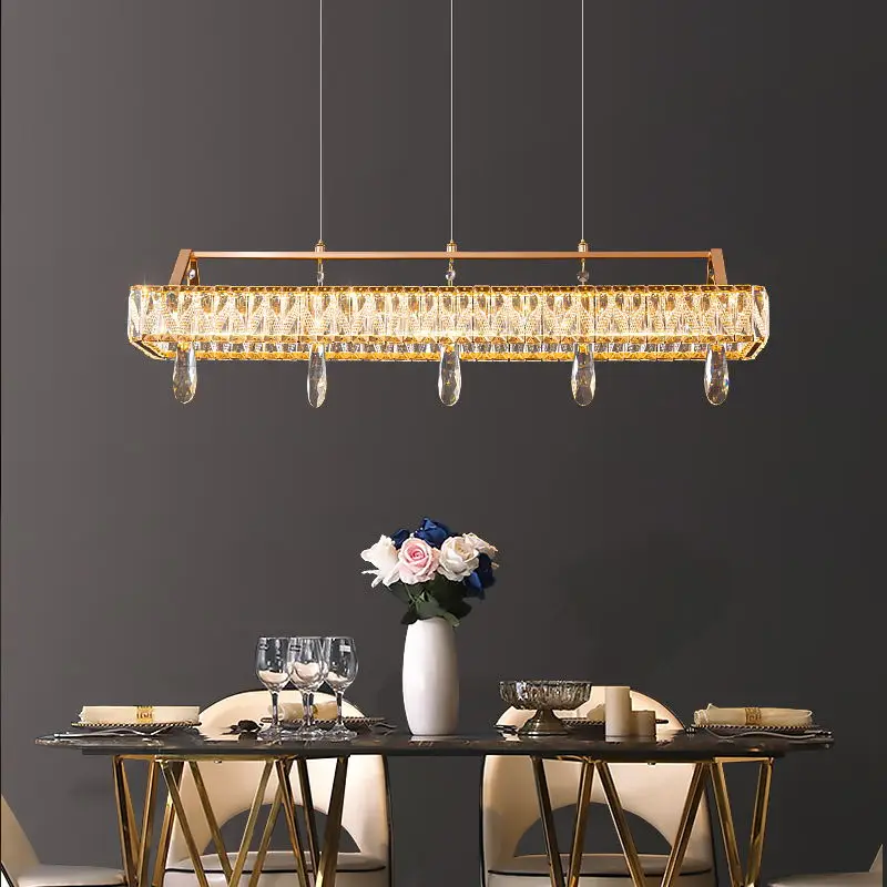 High Quality Home Decoration LED Light Hotel Villa Rectangular Luxury K9 Crystal Gold Chandelier