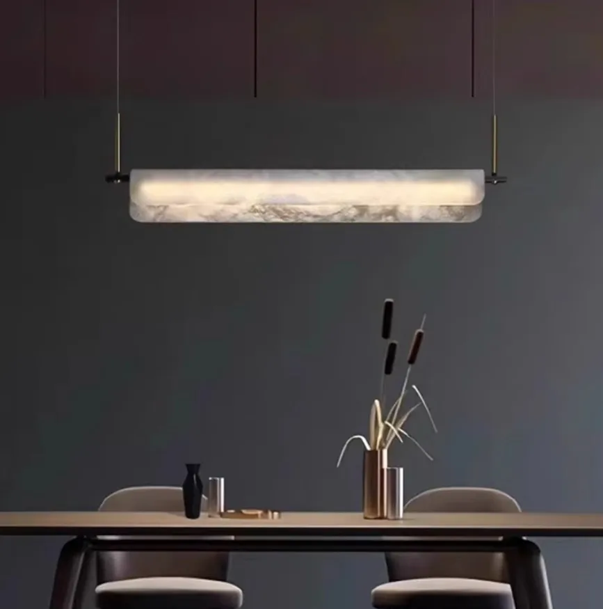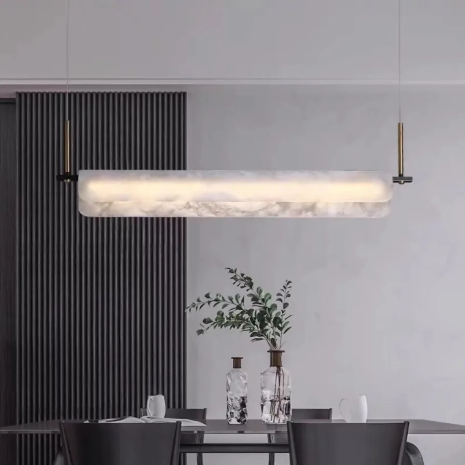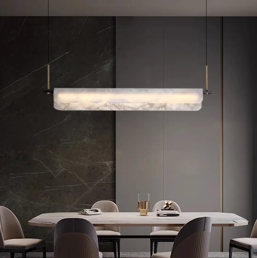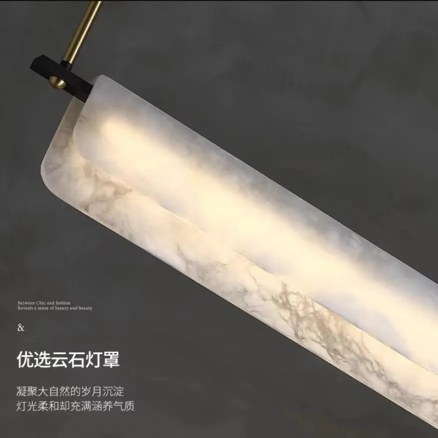 Nordic Style Modern Simple Luxury Spanish Natural Marble Chandelier Adjustable Height Dining Living Room Ceiling Lamp AC Power