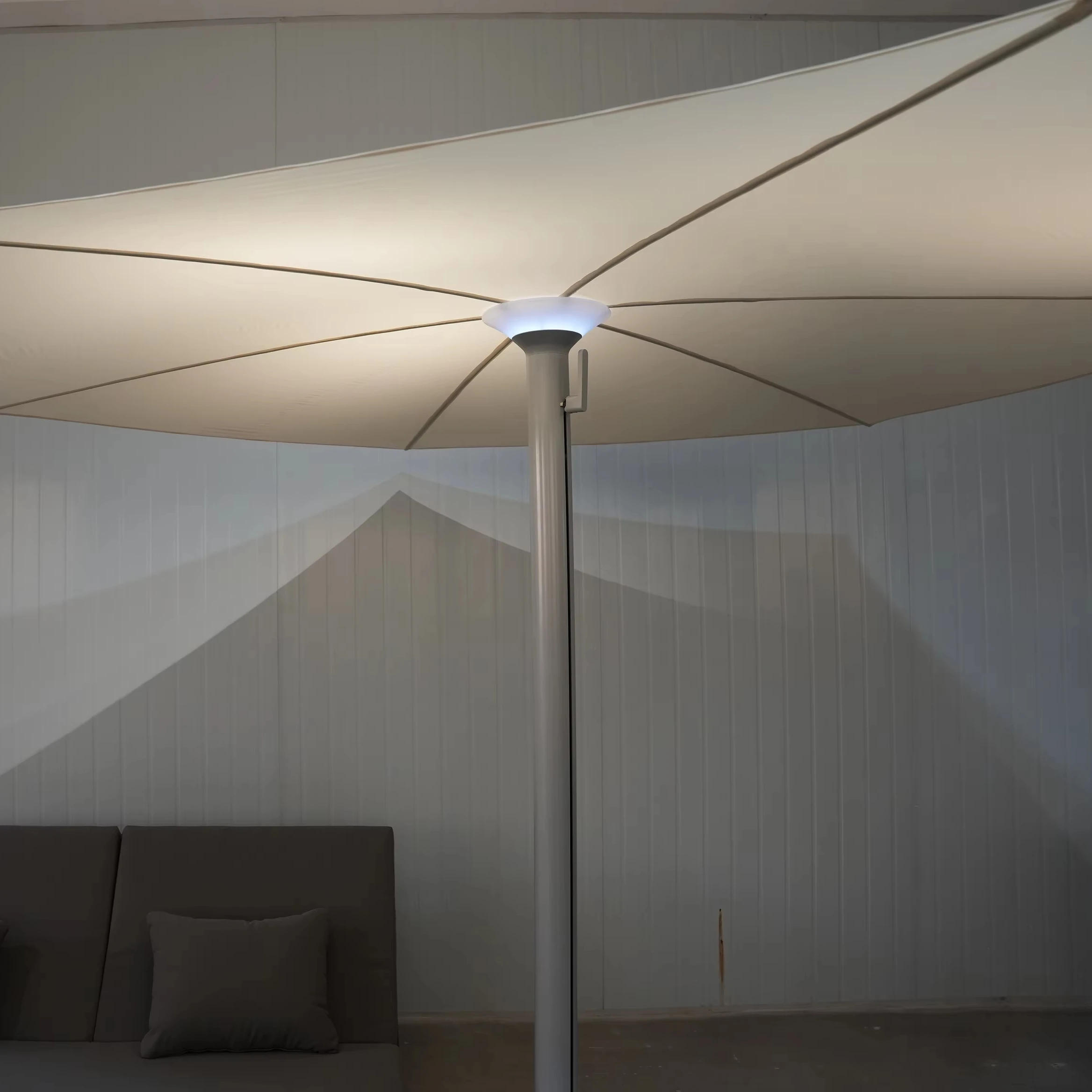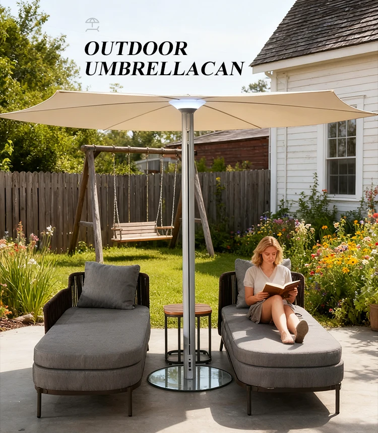 LED Illuminated Patio Umbrella with Detachable Shade and Power Bank Charging Port Garden Light for Outdoor Dining