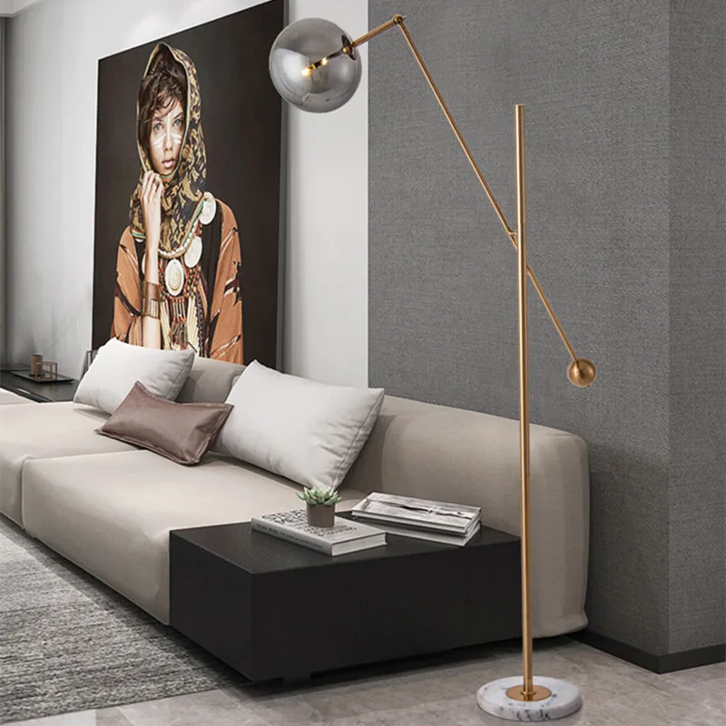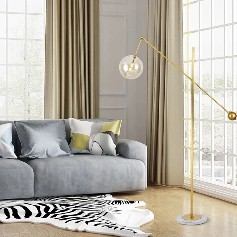 Nordic Style Luxury Gold Marble LED Floor Lamp Postmodern Indoor Decorative Adjustable Glass Ball