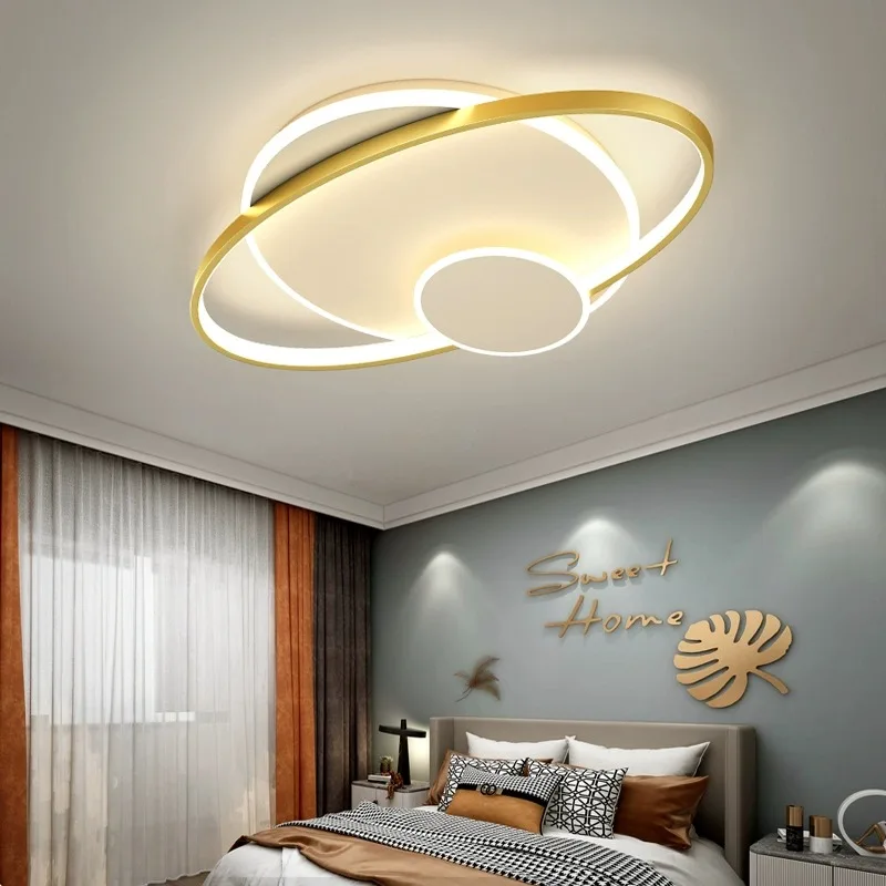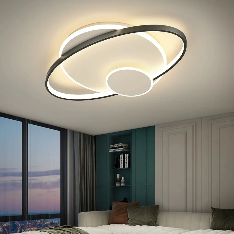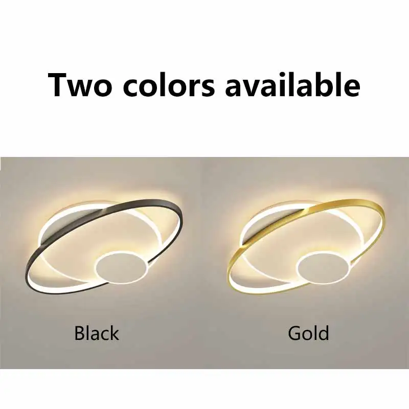 Modern Minimalist LED Ceiling Lamp Black and Gold for Living Room and Bedroom Acrylic Cover with Remote Control Iron Base
