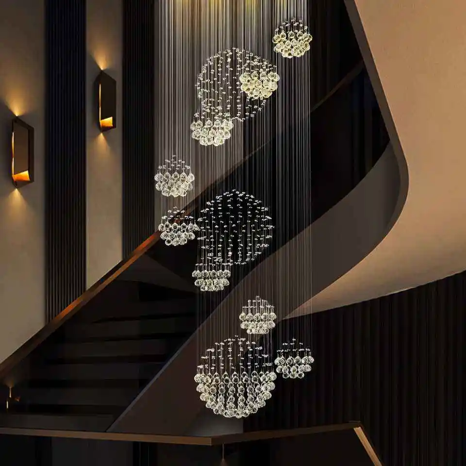 Staircase Hanging Pendant Lamp Raindrop Spiral Crystal Chain Large Chandeliers Lights for High Ceilings