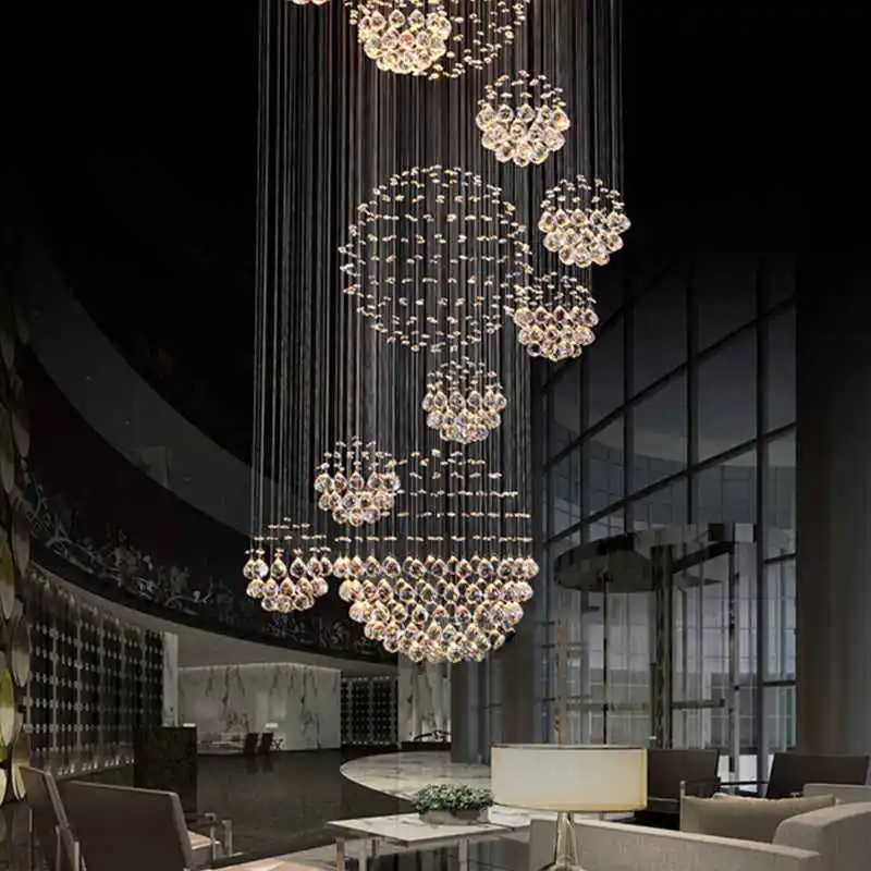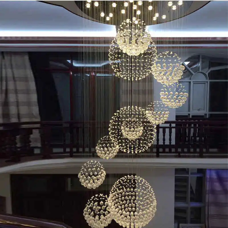 Zeal Lighting Long Stairwell Hanging Pendant Light Staircase Villa Duplex Stair High Ceiling Crystal Chandelier