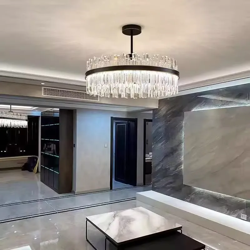 Modern Hotel Glass Crystal Post Modern Black Ceiling Pendant Lamp Gold Luxury K9 Crystal Chandelier Pendant Light