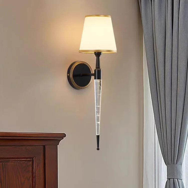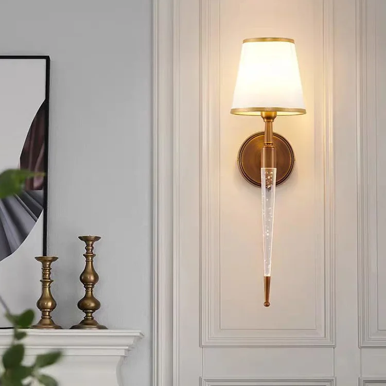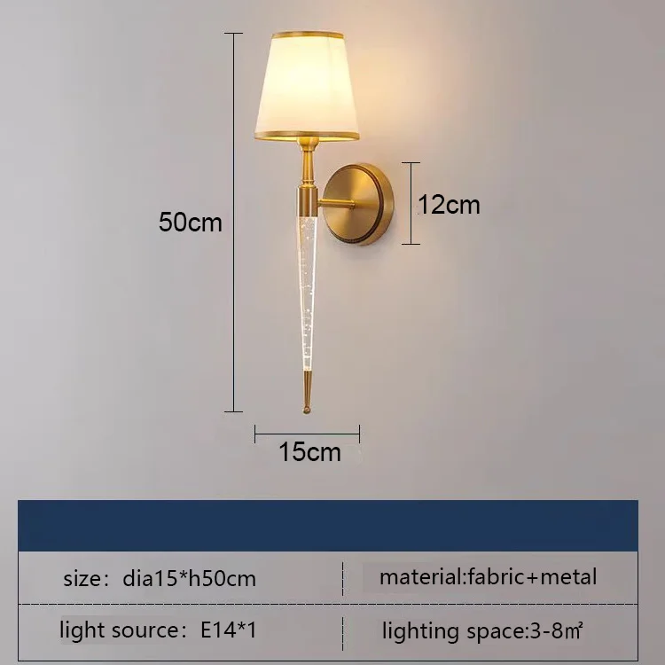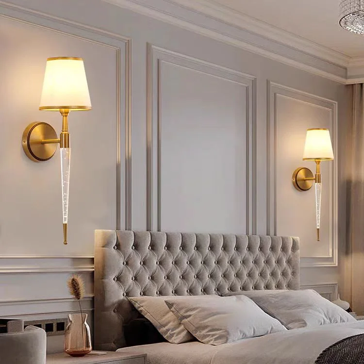 Modern Decor Wall Sconces Lamp Bedside Golden Fabric Shade Wall Light for Indoor Living Room Hallway