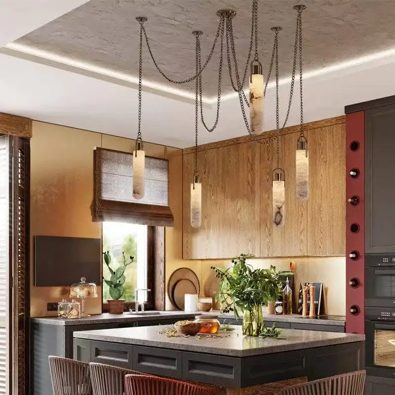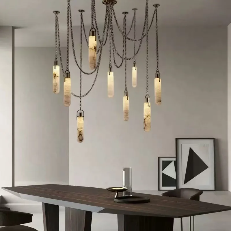 Modern Spanish Natural Snowflake Marble Chandelier for Living Room Designer Villa Bar Rectangle Multi-Head Hanging Chain New