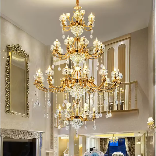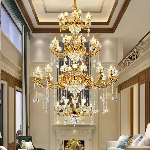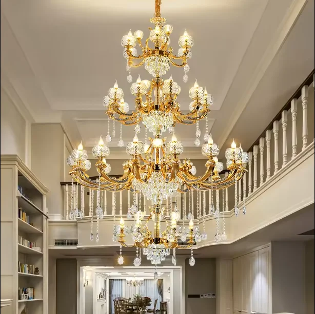 Zeal Lighting Hotel Lobby Hall Decorative Large Hanging Light Customized Long Gold Crystal Elegant Chandelier