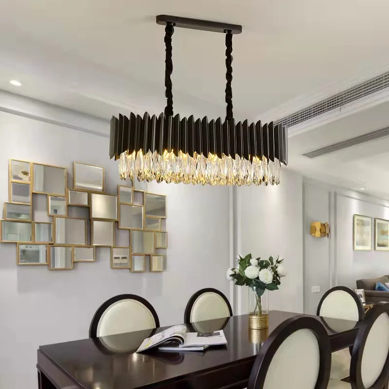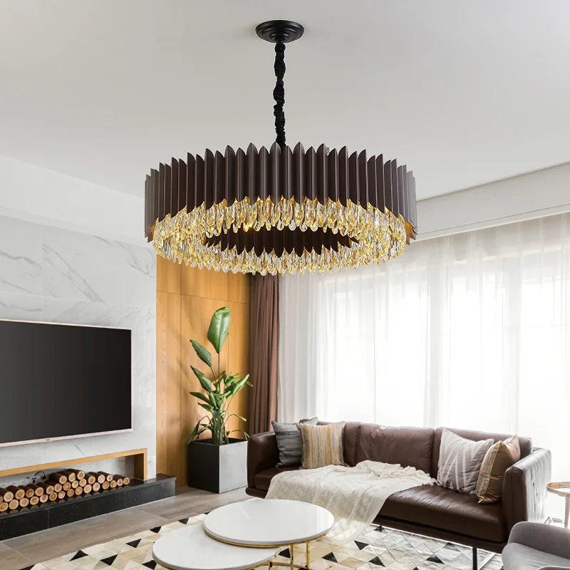 High Quality Pendant Lights Living Room Black Gold K9 New Luxury Led Crystal Chandelier