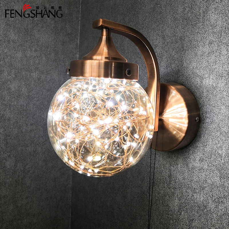 Copper Wall Sconce Lamp Background Natural Marble Indoor Wall Lamps for Home Hotel Bedroom
