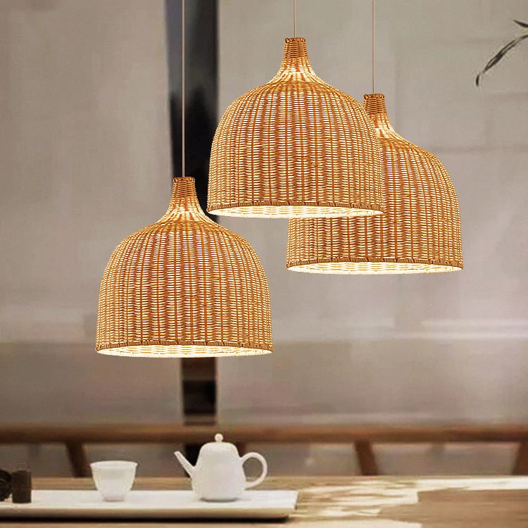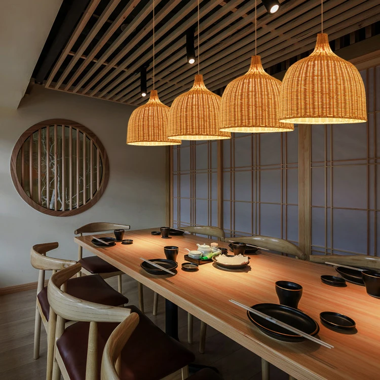 Vintage Lights Round Rattan Woven Restaurant Lights Bamboo Lampshade Country House Chandelier Ceiling Pendant Lights Rattan Lamp