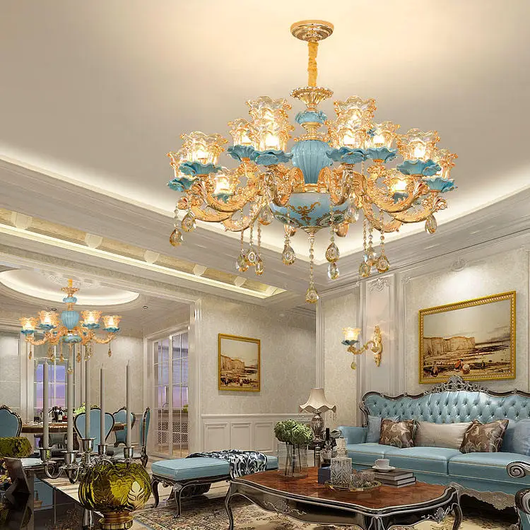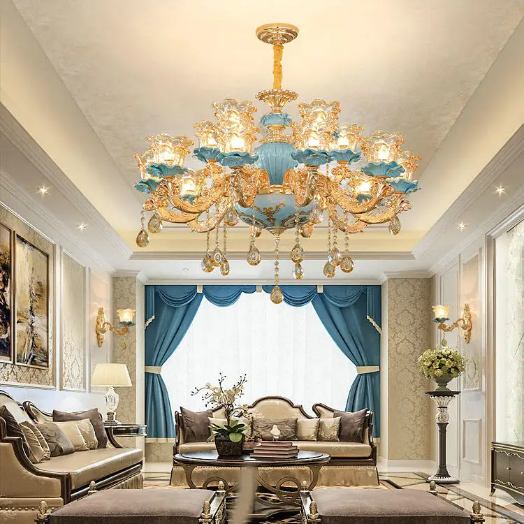 Zeal Lighting Luxury Atmospheric Design Lamp Hotel Hall Ceramic Crystal European Chandelier Fixtures Ceiling