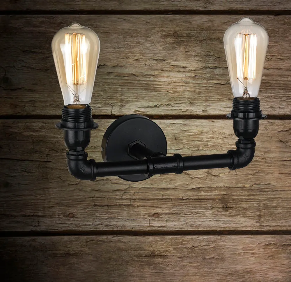 Hotel LED Edison Filament Bulb Vintage Industrial Steampunk Iron Water Pipe Shape Wall Lamp Light