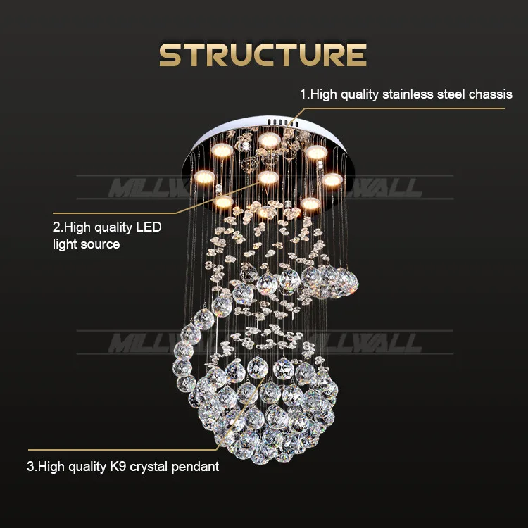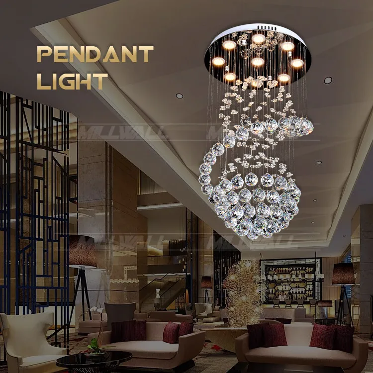 Zeal Lighting Long Stairwell Hanging Pendant Light Staircase Villa Duplex Stair High Ceiling Crystal Chandelier