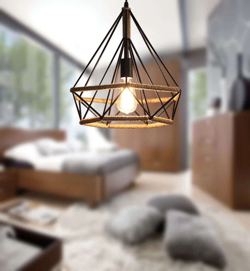 Industrial Ancient Jute Rope Dinning Suspended Pendant Lights Lighting