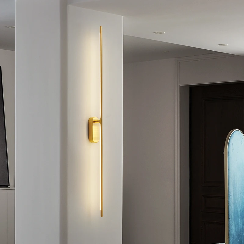 Modern Bedroom Living Room Background Wall Aisle Decorative Lamp Creative Line LED Full Copper Wall Lamp