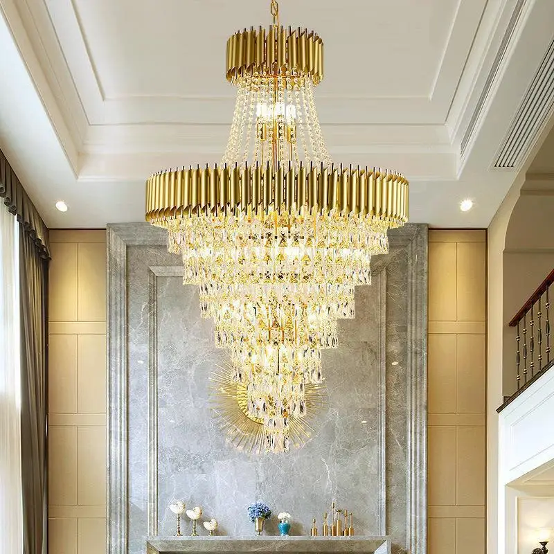 Zeal Lighting Hotel Lobby Hall Decorative Large Hanging Light Customized Long Gold Crystal Elegant Chandelier