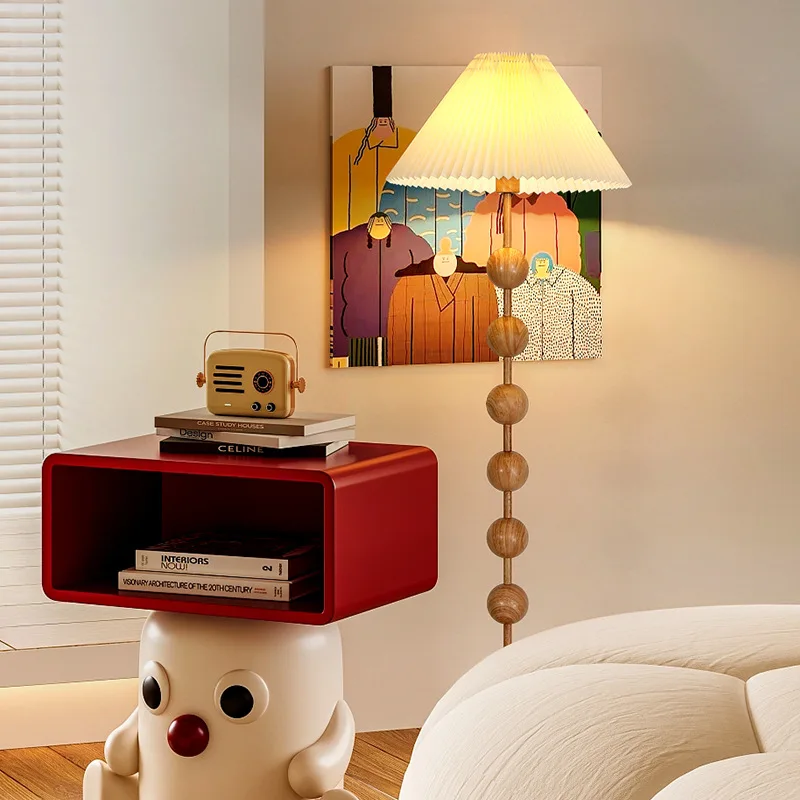 Hotel Bedroom Bedside Standing Lamps Modern Fabric Lampshade Wooden Floor Lamp for Living Room Decor