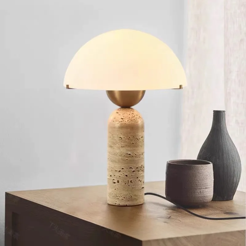 Nordic Natural Yellow Travertine Table Lamp for Modern Home Hotel Living Room Study Bedroom Bedside Decor for Reading