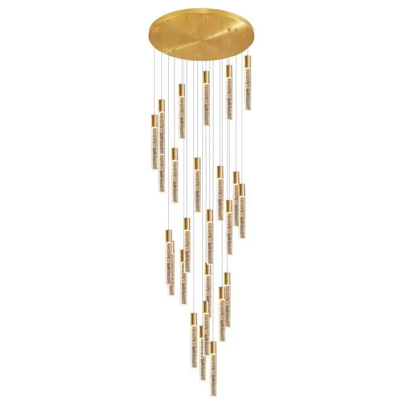 Modern Luxury Lobby Staircase Hanging Crystal Tube Pendant Light Gold Large Long Customized Chandelier for Villa